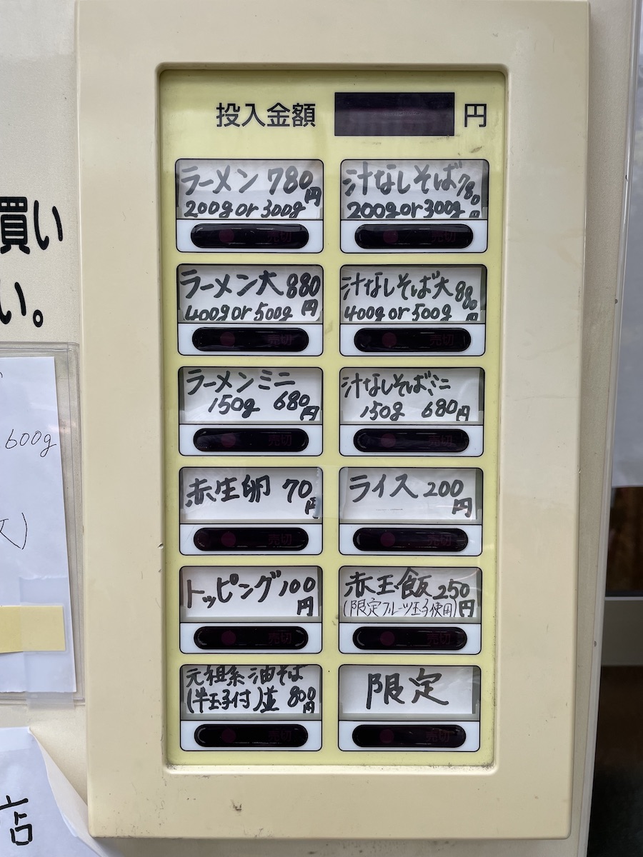 当事務所の向かい側(旧中央ショッピングセンター前)に昨日オープンした「めん屋 五坊」さんに行ってみました。5席しかないこともあってしばらく待ちました。写真は「汁なしそばミニ」です。ラーメンはあまり詳しくないのですが、二郎系なのかな? 二郎ほど量は多くない印象ですが。ヤサイ、ニンニク、アブラ、カラメのトッピングが無料だったり、なかなかユニークです。汁なしそばは美味しかったです。先に食べていたひとの盛りがすごかったので、警戒して「ミニ」を注文したんですが、ちょっとだけ物足りなかったかな。「200g」にするか、ヤサイマシとかにすれば標準的な成人男性にちょうどいい量かというという気がします。300gはかなりたっぷり食べたいかた向けでしょう。